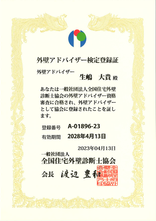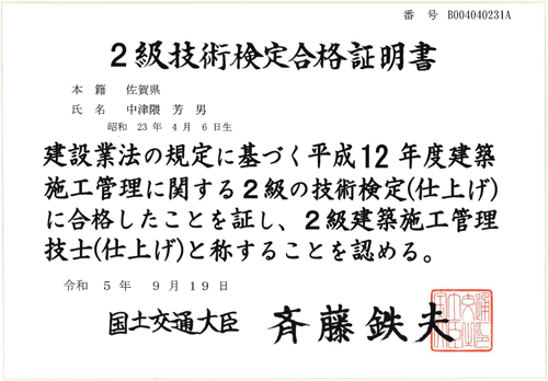 サニー建設商事には住宅にまつわる塗装のプロが複数在籍しております。国が認めた技術力を地域の皆様に適正価格で提供いたします。